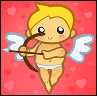 Learn how to draw baby Cupid for Valentine's Day with easy drawing lessons and easy illustrated instructions.